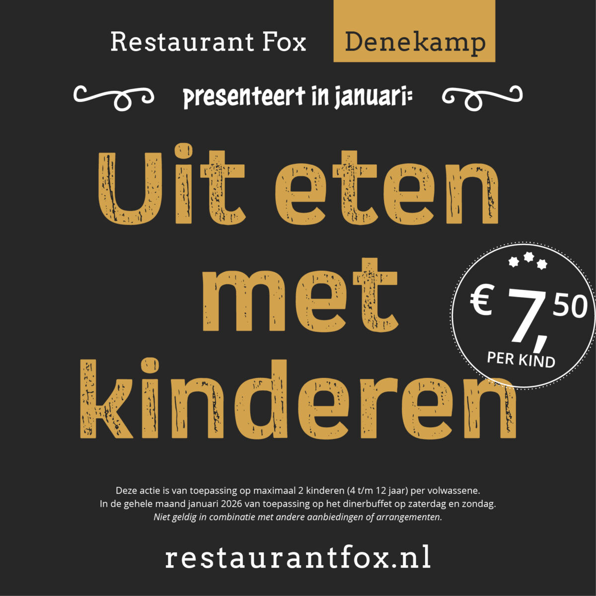 – Op zaterdagen en zondagen is er ook ons heerlijke dinerbuffet! En in januari eten kinderen heel voordelig!